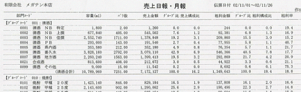 メガテンは2社あって、当然だがそれぞれに決算をしている。創業当時からPOSシステムを導入しているので、導入以前との比較はできない。
