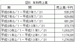 メガテンのこのチャートまでの年別売上高は以下のとおりである。(図5)