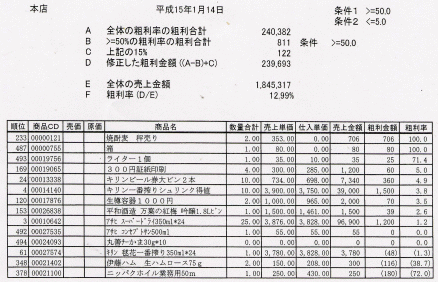 要するに、ありえないと考えられる数値を探し出して、平均的な粗利益に訂正してしまうのである。もちろんその後は商品マスターの点検を行う。