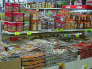 写真6の売り場も「見せている」。お客さんの目線に合わせた陳列をしている。珍味は利益商品であることが多く、メガテンもしっかり売っている。