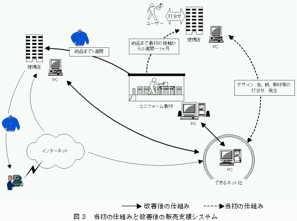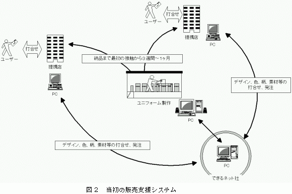 新たに受発注の期間短縮とオリジナルユニフォーム販売のフランチャイズ展開の構想のもと、3年前に「できるネット社」を立ち上げたのである。