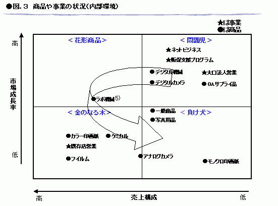 全社的な観点から個々の製品や事業の戦略的な位置付けをすることにより、最適な経営資源の配分を考えようとするもの。 |