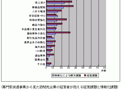 中小企業総合事業団によるIT推進アドバイザー派遣事業があり、ITとはなにか、ITへの取組みは、現在のシステムでよいのか、新システムをつくるにはどうしたらよいか等に応えるため、コンサルタント等の実績を持った専門家を派遣する。