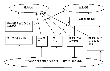 前の項(業界の需要低迷)で、導入システムは間接的に売上増進に貢献している部分もあると述べたが、導入システムとその貢献内容を、その因果関係を捉えることによって確認してみよう。