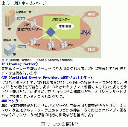 共通のサービスレベルを保証しながらも、結果として競争環境が作られコスト低減が図られることも目指している。現在JNXには約400社が加入している。5)