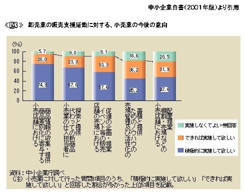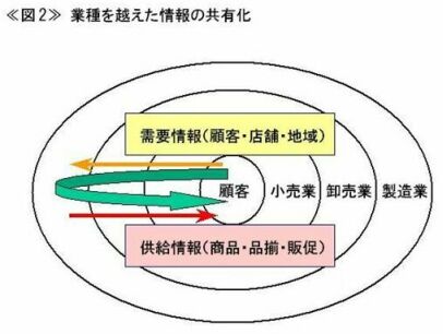 一方では、卸売業、小売業さらには製造業まで含めて共有すべき課題が増え、協業が活動の前提になりつつある。卸売業に対しても、リテールサポート(小売支援)の強化や、メーカーと小売業の中間にあるポジションを利用した情報のマッチング機能の充実が求められている。今後、企業・業種を超えた情報の共有化をベースに、企業の連携による社会的な付加価値の創出が基本的な使命になると考えられる。《図2》