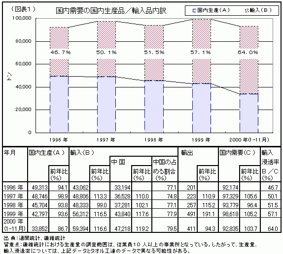 特に中国製品の輸入が拡大し、国内メーカーは苦しい状況が続いている。(図表1)
