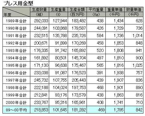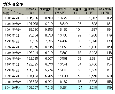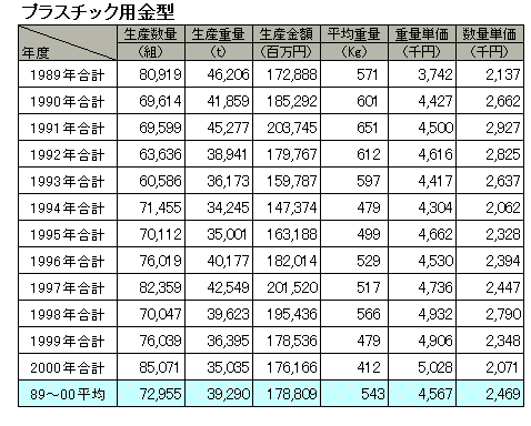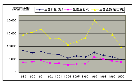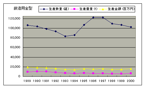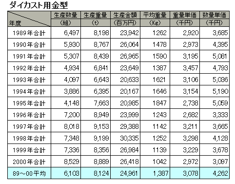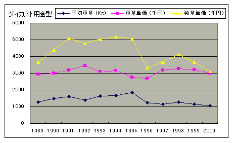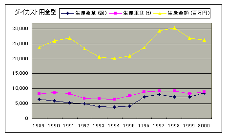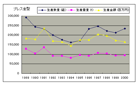 金型業界は世界的な同時不況のもと、製造業全般に大きな影響を与えており、韓国企業に押され気味である。経済産業省が発表している過去12年間の統計情報(参考文献:金型業界統計)からも分かるように、特に金型の単価が減少しており、生産高が向上しても利益が上がらないというジレンマがある。
