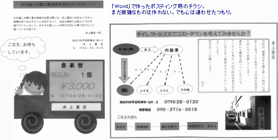 「教室で習ったことを参考にしながら「Word」で作りました。まだまだ完成度も低くて、恥ずかしいんですけれど、待っていても仕事は来ませんから。