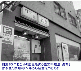 「森繁」は、昭和元年創業の地元で老舗の割烹料理店。宮永さんは昭和39年に2代目を継いだ。